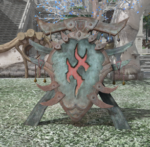A pavis shield of iron used by the Amalj'aa to fortify their strongholds.