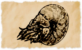 An inland cousin of the nautilus, the ammonite has developed a two-layered shell which it fills with water heated by its own body. This insulates the creature from the cold, allowing it to survive in the cold northern climes.