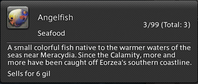 A small colorful fish native to the warmer waters of the seas near Meracydia. Since the Calamity, more and more have been caught off Eorzea's southern coastline.