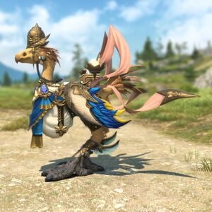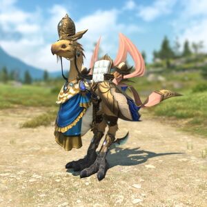A suit of chocobo armor designed to resemble Lakshmi, Lady of Bliss.