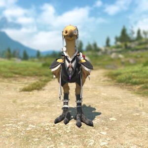 A suit of chocobo armor designed to fool the world into believing your chocobo is a man hired to answer your front door.