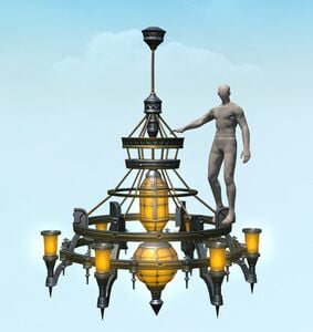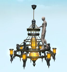 A furnishing at the Church of the First Light, this chandelier was imbued with levitation magicks to prevent it from falling and causing injury. In a development the church could not have foreseen, it has since been enhanced by fae enchantments and made able to soar the skies while bearing a rider.— In-game description