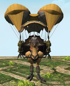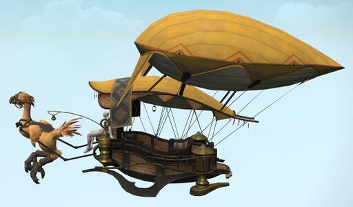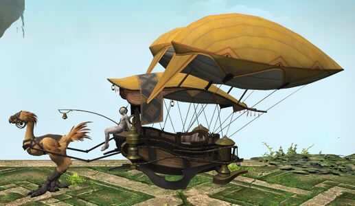 A ubiquitous mode of transportation in Eorzea, the chocobo carriage is kept aloft by ceruleum gas-filled bladders. This technology traces its origins to an early Ixali dirigible that crashed in the Twelveswood and was seized by Gridanian authorities.— In-game description