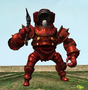 This flashy golem was constructed by a band of commerce-minded kobolds hoping to establish regular trade with their seafaring neighbors. Coated in Lominsan red, propulsion power is apparently enhanced by as much as thirty percent.— In-game description