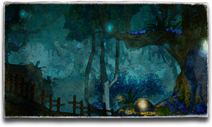 An arboreal sea of blue-glowing trees and deep cenotes, the “forest of the brethren” is the spiritual homeland of the Mamool Ja. Although little sunlight penetrates the dense canopy, the pulsing ambient aether provides a constant source of soft, cerulean illumination.
