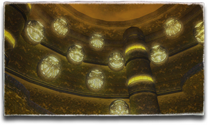 This set of spiral walkways holds records of Milalla history and culture, though their ancestral origin is seemingly unknown. The mask-like decorations in the main hall are said to represent the reverence, adoration, and joy inspired by the presence of the “Speaker”─the title given to the Milalla's spiritual leader.