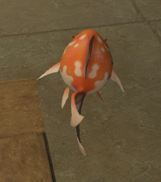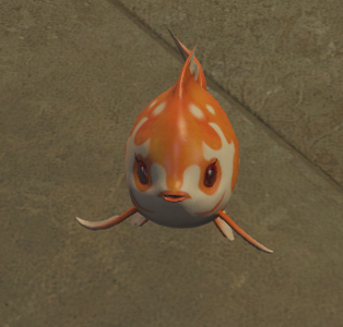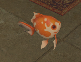“Reeled in by your retainer, this delightfully plump fish was created by a Doman goldfish enthusiast, its name a portmanteau of his nation and the local word for gold. It floats in the air by virtue of the cloudsbreath seeds it devoured, though how it manages to breathe is unknown.