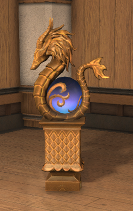 “One may struggle to fit a statue of a large golden dragon wrapped around an expensive-looking indigo orb into their existing décor without spending large amounts of gil on suitably opulent furnishings to match.