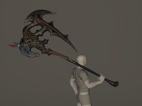 “Handed down through countless generations, this axe has spent most of its existence in the hands of Berserk warriors hailing from a Hellsguard village hidden deep in Abalathia’s Spine. One of Farsha's more distinctive characteristics is the ability to remove and replace its head, should the bit become dulled in the heat of battle—a common occurrence when wielded by one whose inner beast has been unleashed.