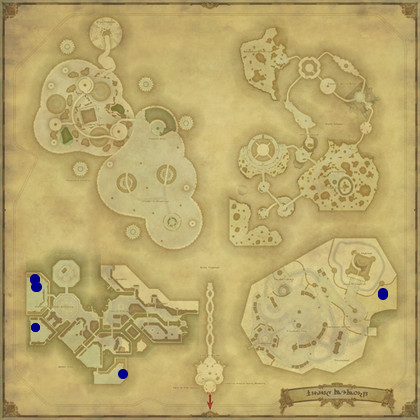 FFXIV Map of Living Memory with Jewel Bearer locations dotted on the map.