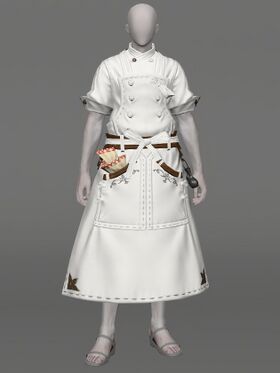 Galleyfiend's Costume Apron is an item level 1 body and can be used by Culinarian. It requires being at least level 80 to be equipped.