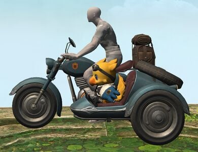 A variant of the Garlond GL-I, this magitek vehicle is fitted with a sidecar to allow for two riders, with engine displacement increased to handle the additional weight. Comes with a life-size mascot lovingly crafted by Wedge─but strictly for a limited time only, and while stocks last!— In-game description