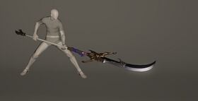 “Technically not a spear, but a long-hafted blade of Far Eastern origin known as a “naginata,” Iwa-toshi was used for many years in the defense of a sacred Doman temple until its wielder died and the weapon was sealed in the temple’s sacristy. When the temple was destroyed during the Garleans’ religious purge, the relic was confiscated and presented to a high-ranking military official.
