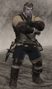 Upon reaching his eighteenth summer, the Hrothgar was forcibly taken to Garlemald to learn the trade. And learn he did, for few can claim the detailed knowledge and experience with ceruleum engineering he commands after twenty-five years in the north. However, such talents were of no use in his village, and so after Garlemald's collapse he chose to remain in Tapper's Den among the friends he had made over the years. There he carries on much as he did before, working to survive and playing Trinity—a game where one forms hands of three cards—to pass the time. With the fallen empire's grip loosening over their territories, Jareck's story is not uncommon, and many like him have chosen to make the best of the lives they have eked out in lands far from home.