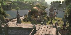 “Located upon the eastern banks of Bronze Lake, Jijiroon's Trading Post is one of two makeshift markets peddling baubles and trinkets to those brave enough to venture that deep into kobold lands. The other is Memeroon's Trading Post, run by Jijiroon's estranged sibling, to whom the stubborn Qiqirn merchant hasn't spoken in twenty summers.