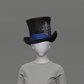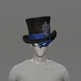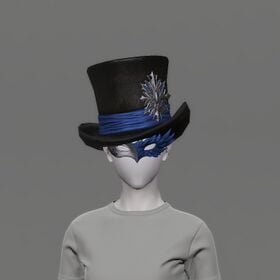 “Particularly when coupled with its matching feathered mask, this handsome top hat with its high, cylindrical crown is allegedly a "must-have" for any "blue mage of mystery."