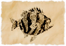 A striped carnivore that hunts the Ruby Sea.[Suitable for display in aquariums tier 3 and higher.][Suitable for printing on large canvases.]