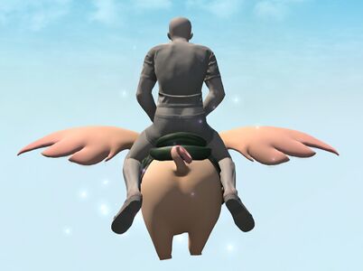 “Unlike its kin, this porxie was born without the ability to cure the tempered. Rather than have it go to waste, however, it was made into a mount and given a crown─perhaps to evoke a sense of luxury and comfort.