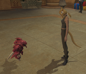 “Retrieved from an imperial base, this scale prototype of a warmachina appears to have been created for aerodynamics testing and carries no armaments. After completing their analysis, the Eorzean Alliance saw fit to bestow it upon members as a reward for exemplary service.