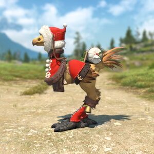 A suit of chocobo armor designed to spread festive cheer.