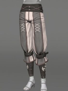 Sarouel of the Divine Hero is an item level 80 legs and can be used by Pugilist, Rogue, Monk, Ninja, Samurai and Viper. It requires being at least level 50 to be equipped.