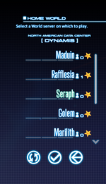 When logging in for the first time, you will be prompted to select a region and logical data center to connect to. You will only be able to create and log into characters within your selected data center, but you can connect to a different data center at any time by selecting the "Data Center" option on the title screen, or from character select, by selecting "World" and then clicking the current data center name at the top of the list.