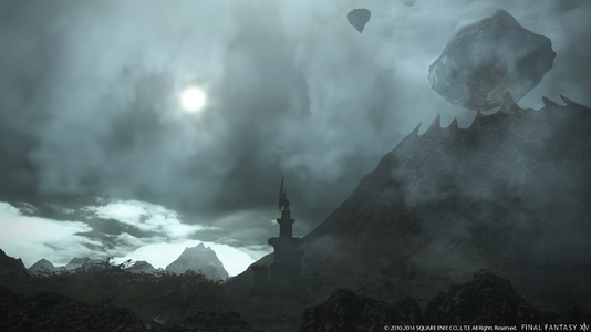 Of all the mighty peaks that comprise Abalathia's Spine, none rise higher than Sohm Al, the highest point in all Eorzea. It is held as a sacred land by the dragons, who are said to journey here when they feel their life slipping away. Formed not of stone but solid crystal, the massive mountain floating above the ground below is a marvelous sight to behold.