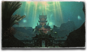Hidden away at the bottom of the Turquoise Trench, this magnificent palace is home to the Ruby Princess, leader of those Raen who dwell beneath the waves. While its beauty can be appreciated from afar, special permission is required to enter the grounds─a privilege seldom granted.