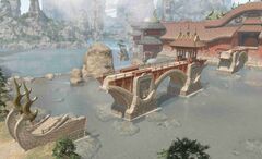 Centuries ago, during a famine brought on by a prolonged drought, a farmer came to entreat the lord of Doma that he might help his people, but was turned away at the castle gates. Undeterred, he sat upon the bridge, unmoving, until the king ventured outside on official business. As he passed, the farmer caught hold of his coattails—a brazen act punishable by death. However, the king was moved by the man's heartfelt pleas, and not only spared his life, but opened the castle's stores of rice to feed the starving smallfolk. In that farmer's honor, the bridge was given its name to remind others to be brave and not fear reprisal if they believe their cause is just.