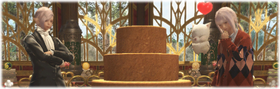 ※This quest is available for a limited time only. - Astrid and Emilie tell you of their plans to serve giant cakes to guests at the Valentione's Day celebrations. A plan that has apparently hit a snag in cake production. Emissaries of love were dispatched to assess the situation at the pâtisserie and should be returning ere long. To that end, Astrid and Emilie invite you to meet them at the entrance to Mih Khetto's Amphitheatre.
