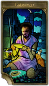 Llafymae the bard sung songs of heroes” hearts. In a time when folk craved overblown epics where fearless champions slew monsters by the score, she crafted verses which laid bare the mind of her subject matter. Her words drew an unapologetic picture of uncertainty and terror, of crippling wounds endured for the sake of honor. She wrote of the heroes’ true selves, which history had buried beneath the grandeur of their deeds. Although her works did not stir the blood as would a valorous ballad, it was no coincidence that those sobered by the truths contained therein did find firmer footing on the path of adventure. Celebrated for the wisdom she imparted to a host of fledgling heroes, Llafymae was raised up as a saint blessed of Nymeia.