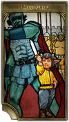 In a town swamped by corruption, the coin held an edge sharper than the blade. The pockets of court officials bulged with gold, yet the law was worth less than the vulgar scrawl on a tavern - room wall. Thus when a merchant tripped over a street urchin, and beat the child to death in a drunken rage, the man expected his ample purse to pay for his crimes. But Anselmet, a newly appointed judge, would not be swayed by bribes. Frustrated, the merchant sought to obstruct justice in myriad other ways, and again was stymied by Anselmer's resolute adherence to the law. The judge championed the return of order, becoming an unbreakable shield for the innocent. Revered for the equity he restored, Anselmet was raised up as a saint blessed of Azeyma.