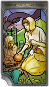 Long was the war, and numerous were the refugees who fled its devastation. When Zozonan caught sight of the haggard throng approaching the city walls, it was as a knife twisting in his heart. The compassionate friar went in search of donations, but the merchants, miserly and selfish, rebuffed his gentle pleas. And so he gathered the few implements of value from his chapel, bartered them for provisions, and set off with a full cart to feed the hungry. Shamed by the austere Zozonan’s act of generosity, those watching from the gates were moved to join him. First one city dweller ventured forth, and then another, until finally a crowd of helpers assembled to continue what the friar had begun. Revered for his example of sympathy and the lives he helped save, Zozonan was raised up as a saint blessed of Nald'thal.