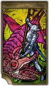 On her way home from a campaign, the mercenary Norvello chanced across a pilgrim camp under attack by bandits. She immediately joined the fray, slaying several brigands before tumbling from her saddle with an arrow lodged in her thigh. Thrown into disarray, the surviving attackers quit the field, seizing a pilgrim youth as they did so. His frightened yelp put Norvello in mind of an enemy soldier she'd killed—a green recruit, scarcely more than a boy. Clenching her jaw against the pain, she pulled herself back onto her mount, and set off in pursuit. The sun was setting when her chocobo returned. On its back it carried the youth, who breathed gently in slumber, and Norvello herself, who breathed not at all. The mercenary was remembered for her selfless tenacity, and raised up as a saint blessed of Azeyma.