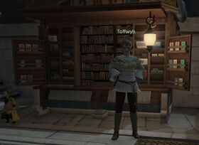 “"Welcome to Toffwyb's Tomes! Might I interest you in a copy of Heavensward, the memoirs of Count Edmont de Fortemps? It includes mention of Eorzea's champion, and is currently one of my best sellers!"