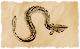 This freshwater eel native to the rivers and lakes of Thanalan will often display the unique trait of swapping its mate with other nearby eels when spawning. Because of this characteristic, the wavekin is oft used in religious ceremonies involving Nald'thal.