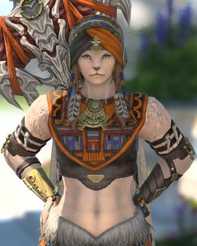 The adopted daughter of the current ruler of Tuliyollal in Tural. She travels to Old Sharlayan to request help from the Warrior of Light and allies regarding a succession contest for the next ruler of Tuliyollal. She is a major character in Dawntrail.